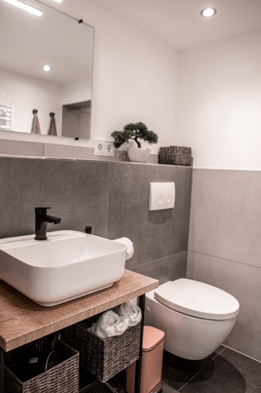 Der Bungalow besteht aus einem großen Schlafzimmer mit bequemen Doppelbett und einem ebenso großen Wohnraum mit moderner, voll ausgestatteter Küchenzeile, Essplatz und TV. Das Badezimmer wurde im Frühjahr 2022 kernsaniert und besticht mit modernen Elementen und einer ebenerdiger Dusche. Für kleine Gäste stehen alle wichtigen Dinge wie Reisebett, Hochstuhl, Plastikgeschirr, Töpfchen,... auf Anfrage zur Verfügung. Bettwäsche und Handtücher sind ebenfalls vorhanden.